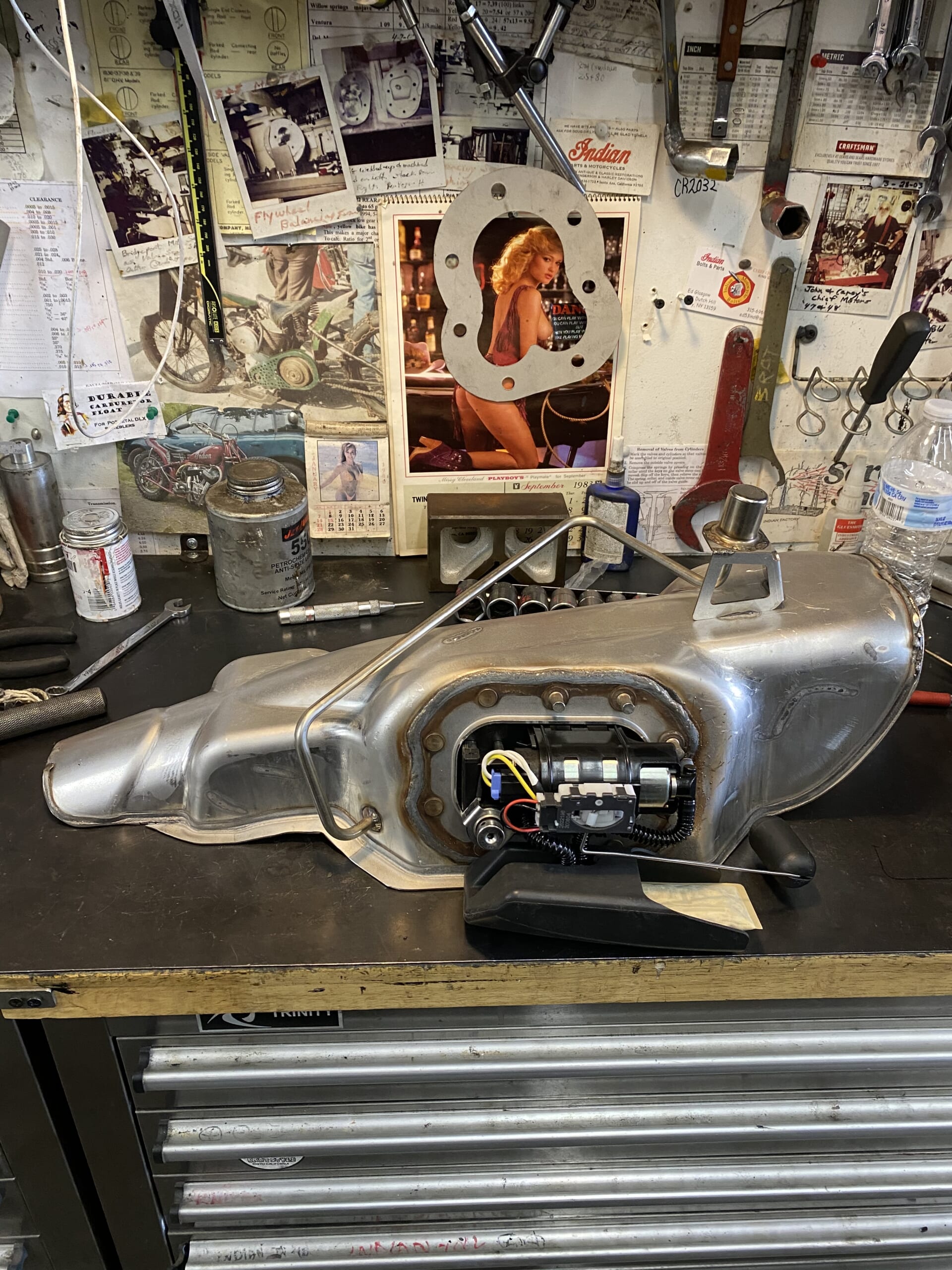 HOME > Indian Chief > 2022 Indian Chief project 2021/07/17 納期がかなり迫ってきているIndian USA×BRATSTYLE USA のカスタムプロジェクト。 なかなかBlogも更新できませんでしたが朝から夜中まで慣れないNew Chiefを進めていました。 かなり大きいタンクです。 外し方もわからないので一苦労 笑 インジェクションシステムの為、タンクにはポンプが埋め込まれいます。 ガスタンクを切断して内部の仕組みを調べてみます。 手強そうですね… GT B! LINEへ送る - Indian Chief, USA