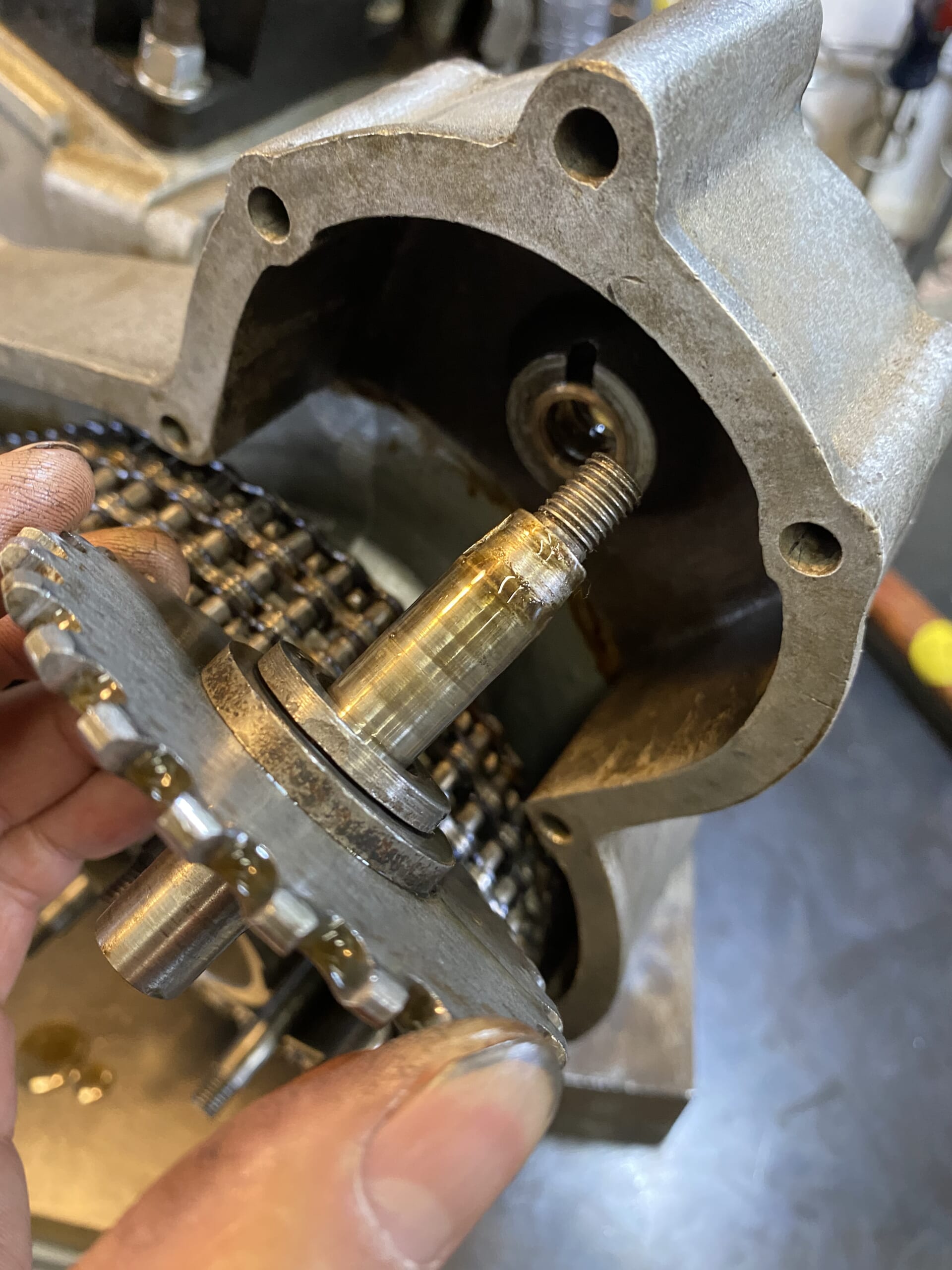 チェーンアジャスターのシャフト。すり減って形が変形しています。