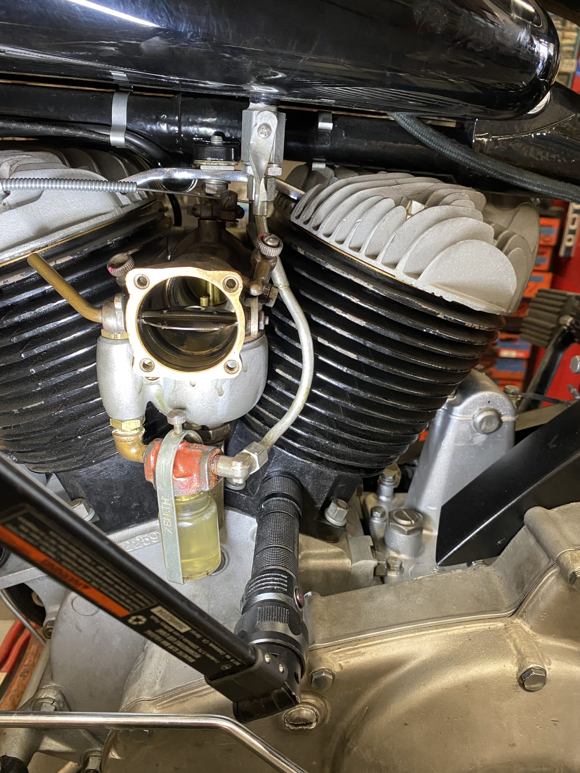試乗時に感じたアクセルと左の手動進角の動きの悪さを修正します。