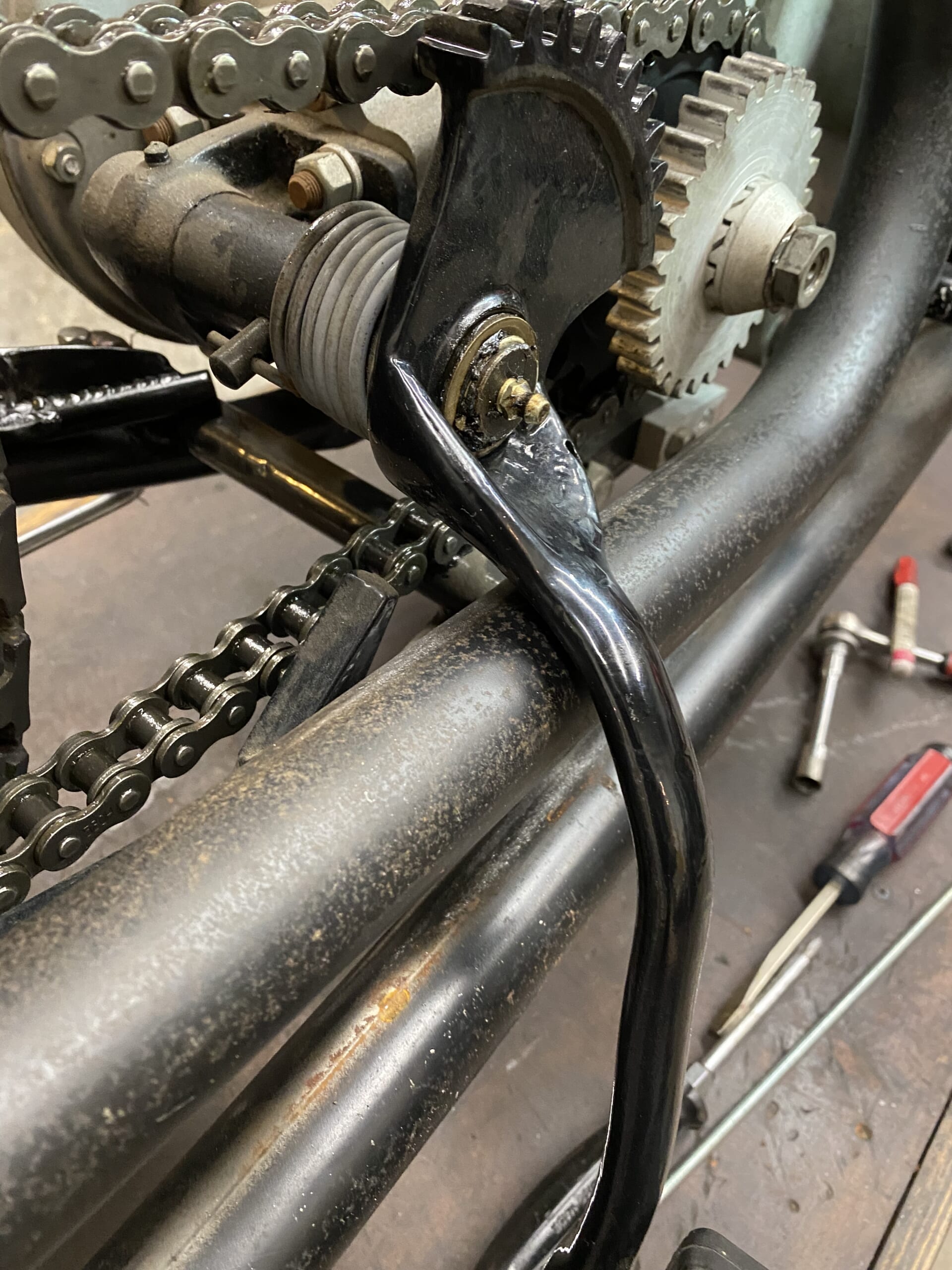 Look for a place where the link does not touch when I put the brake and does not hit when I kick it.