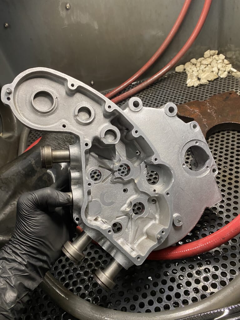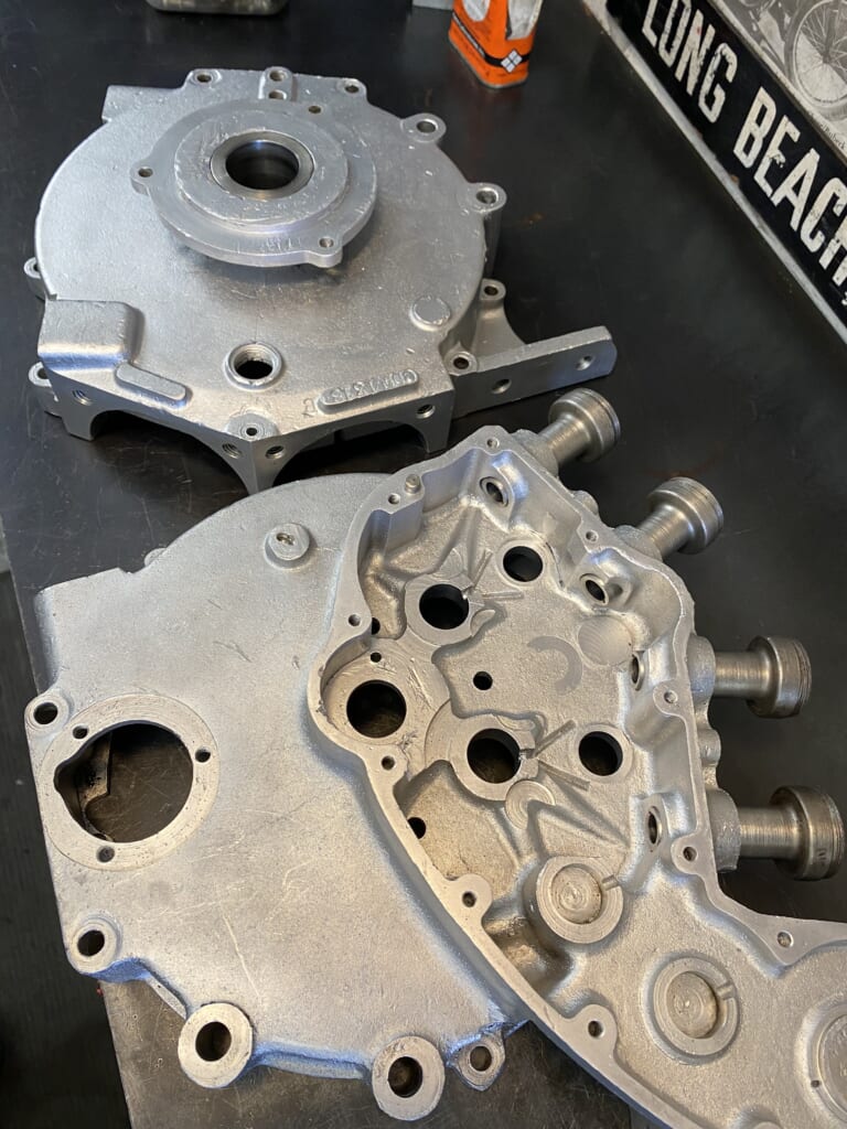 クランクケースを削ってフライウィールギリギリにセットして合わせます
