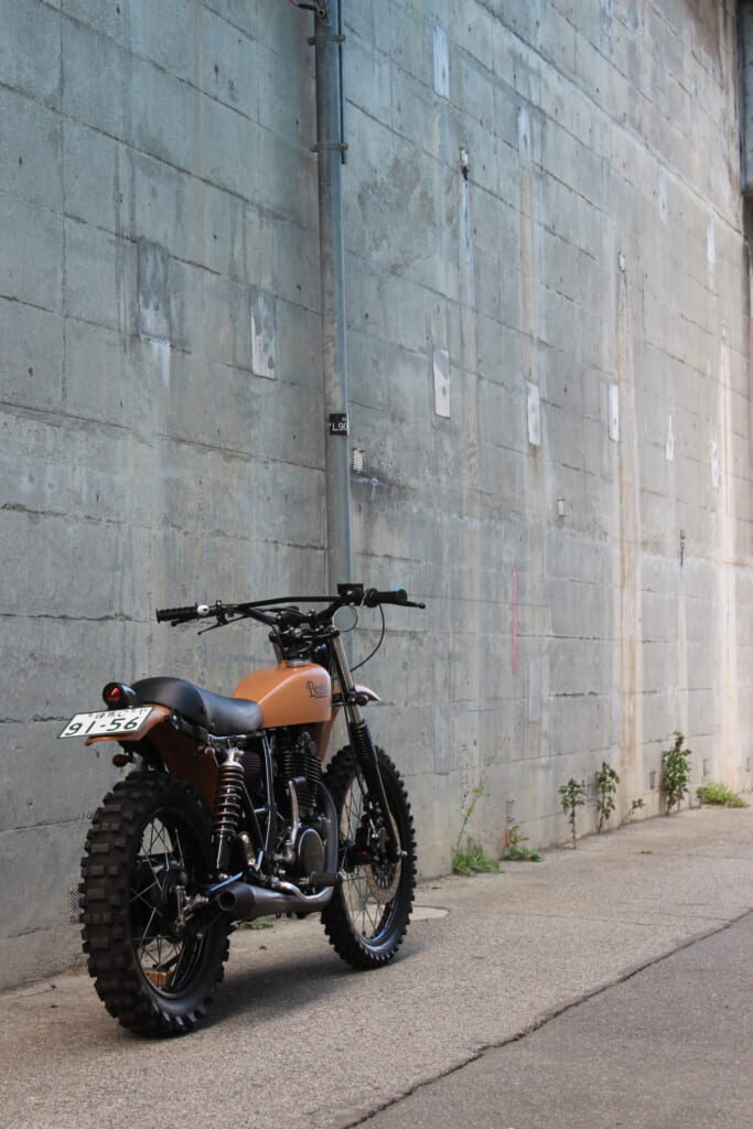 BRAT STYLE が製作するSR VMXは各パーツや車高など実際にオフロード走行できる仕様で当時のモトクロスバイクを忠実かつスタイリッシュに仕上げています。