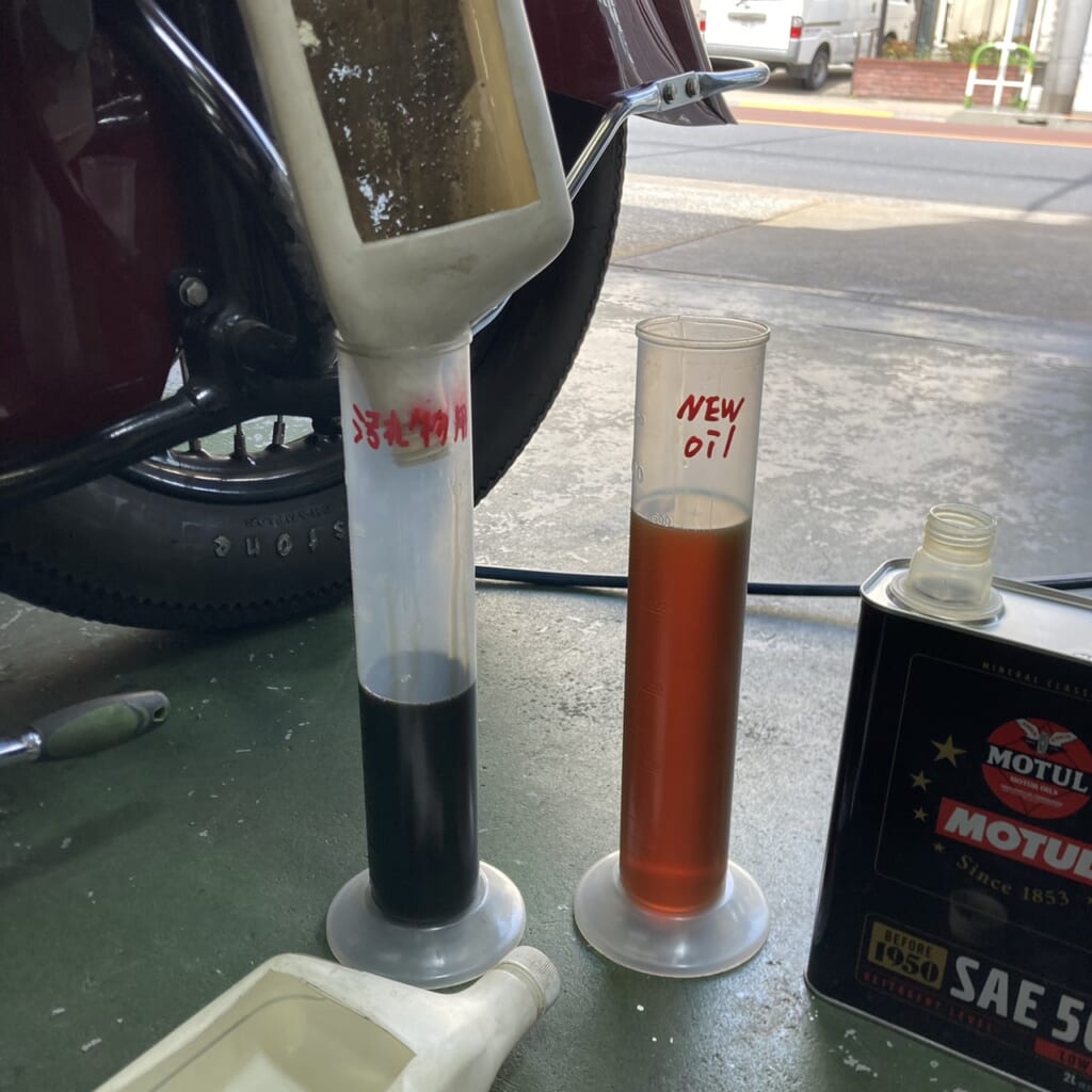この通り、見比べるとかなり汚れているのがわかります。カーボンが混ざるエンジンオイルならまだしも、トランスミッションで高頻度に交換していてもこれですからね。このお客様のようにエンジンオイルと一緒に毎回トランスオイルも変えたいところです。