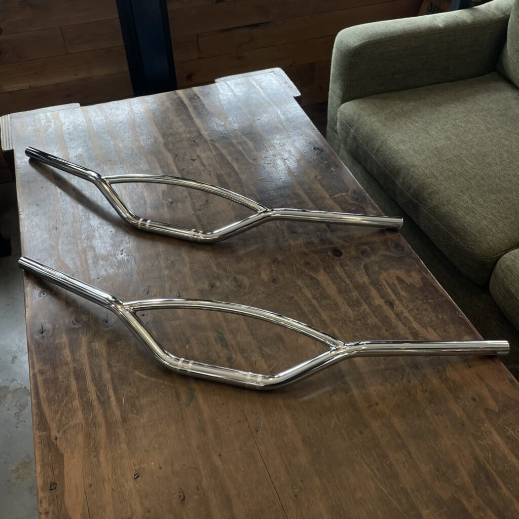 VMX , Scramblerカスタムには欠かせない人気ORIGINALハンドルは、曲げ加工、アーチバーの取り付けからメッキ加工まで、全て国内工場で丁寧に生産されています。