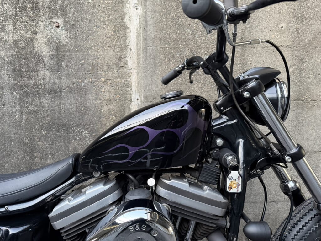 883Rのスポーティーなイメージを最大限に生かしつつも、ストリートで際立つようペイントは怪しげにくすませたパープルのフレイムスをチョイス。