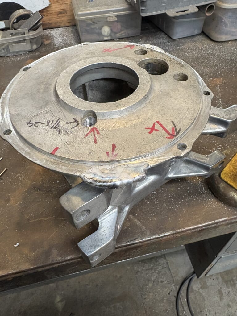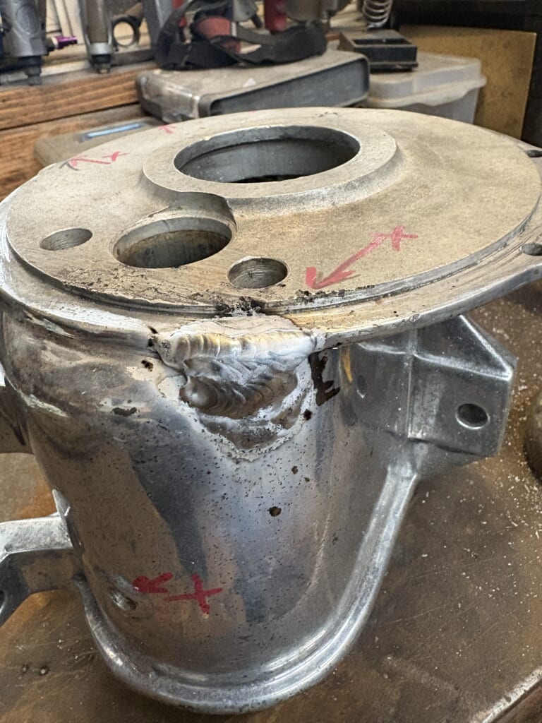 溶接。80年前のアルミを巣穴無く溶接するのはかなり難しいです。出来ればやりたく無い作業です。