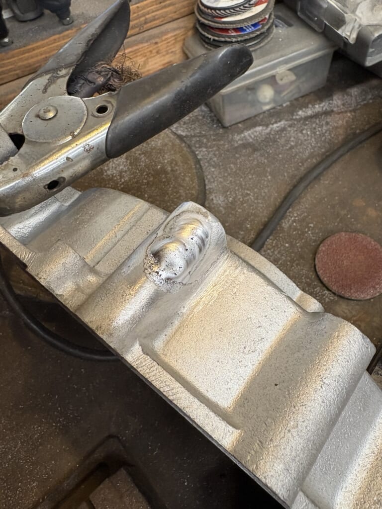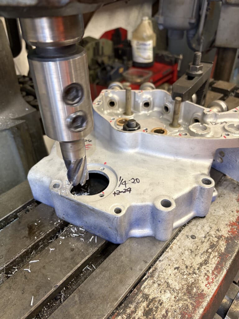 HOME > Indian Chief > 37,46,Chief project/ Motor/2 2026/01/20 2026/01/22 合わせ面のラッピング終わったクランクケース。 次はサンプバルブ周りの加工 スクレパー機能が使えるように 加工完了 ケースマウントを点検しているとクラック発見。 削って 溶接 ミルで仕上げます クラック修理完了 GT B! LINEへ送る - Indian Chief, USA