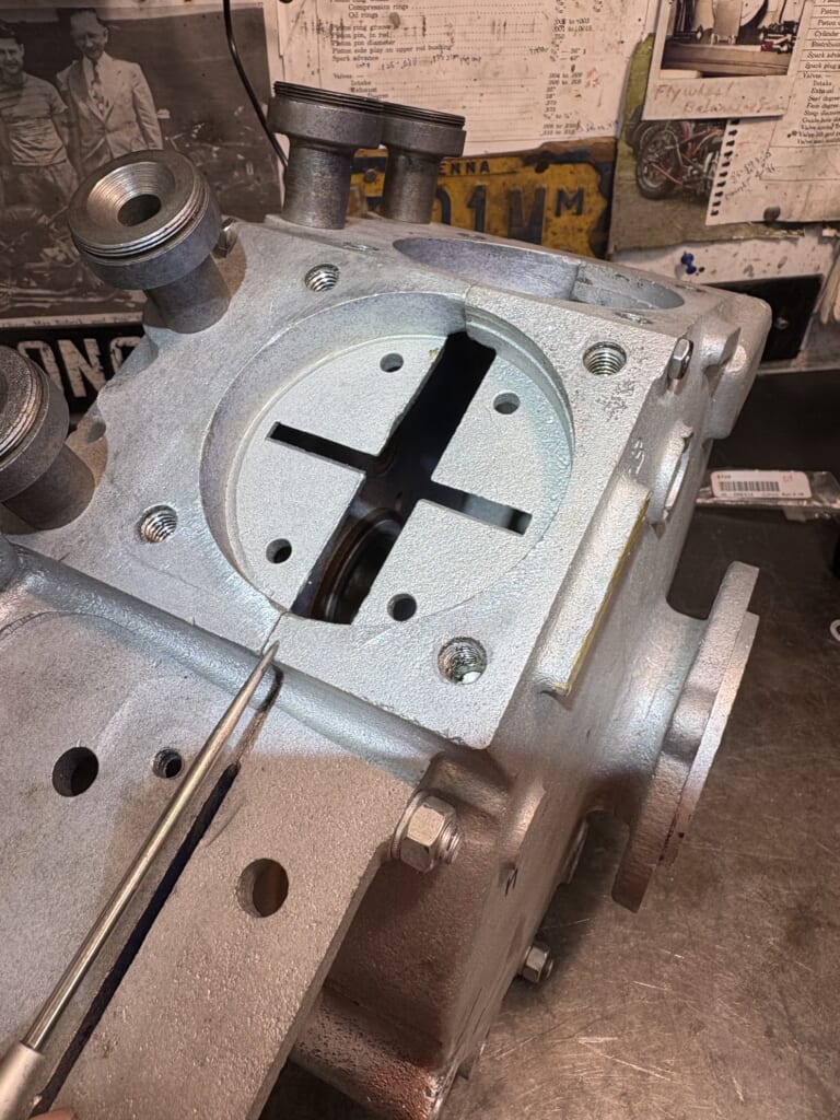 写真では少しわかりにくいですが面が出ていません…このままではシリンダーとの隙間からのオイル漏れや破損につながる可能性があるので修正していきます。