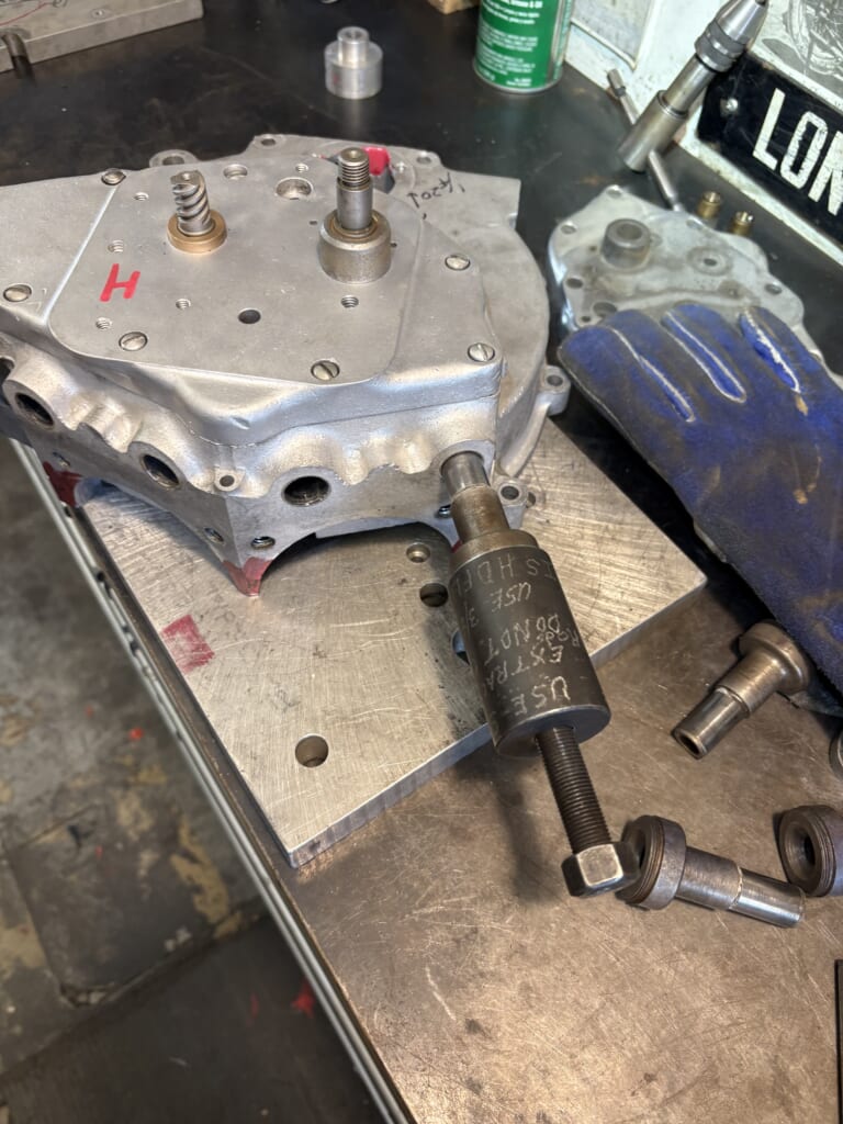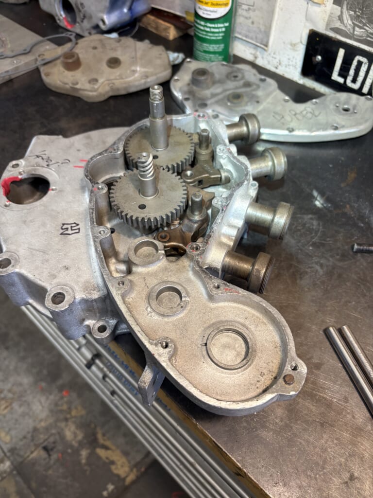 切削にはタペットガイドが邪魔になるので抜いて行きます。抜く為にはカムやリフターを一度装着し