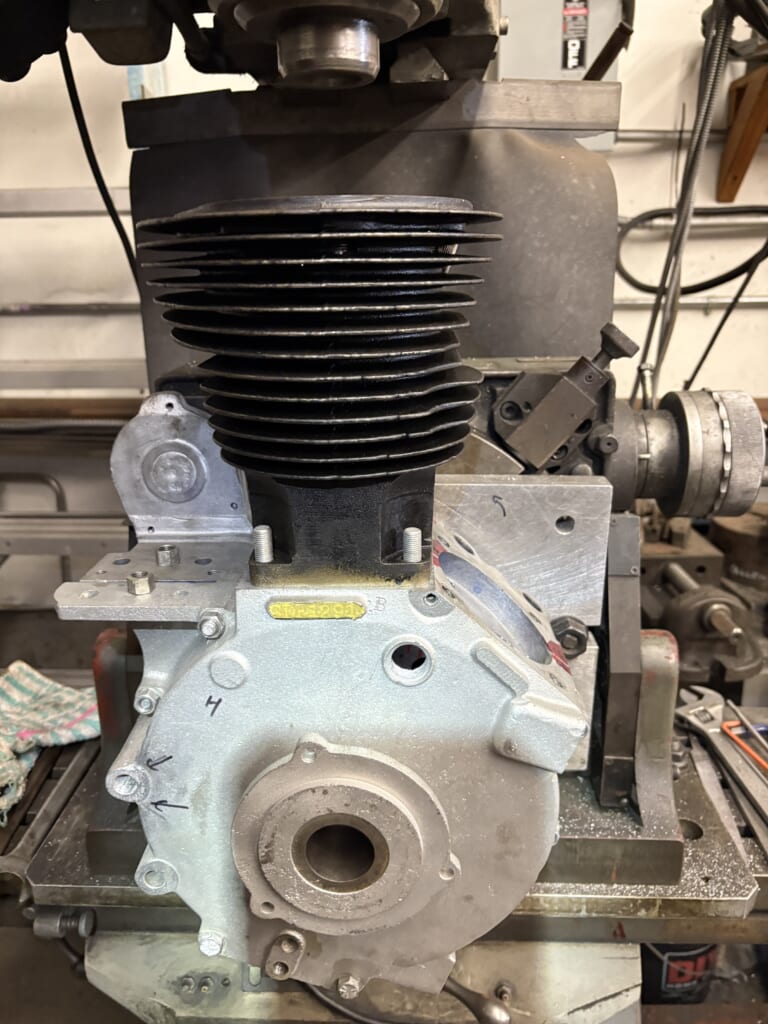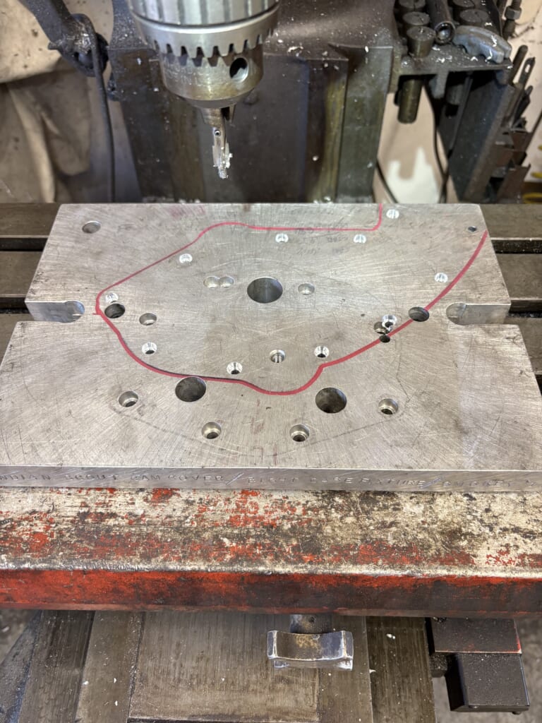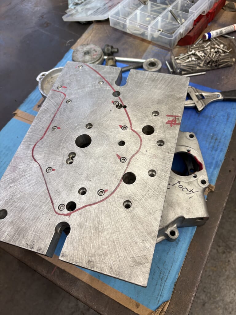 ミル専用の治具プレート製作。カムカバーのネジ山とピニオンのレースの穴を使います