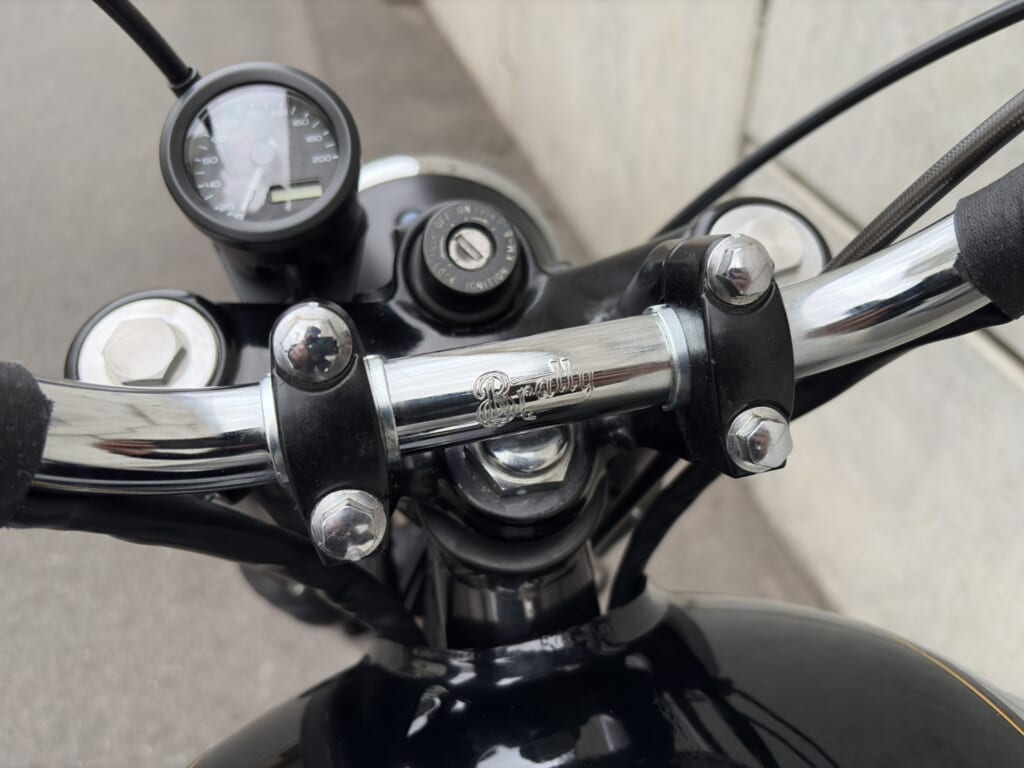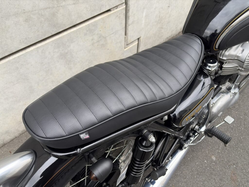 99年のW650をベースに限定Chrome Editionの外装を使い、ブラットスタイルのオリジナルパーツで丁寧に仕上げた一台。
