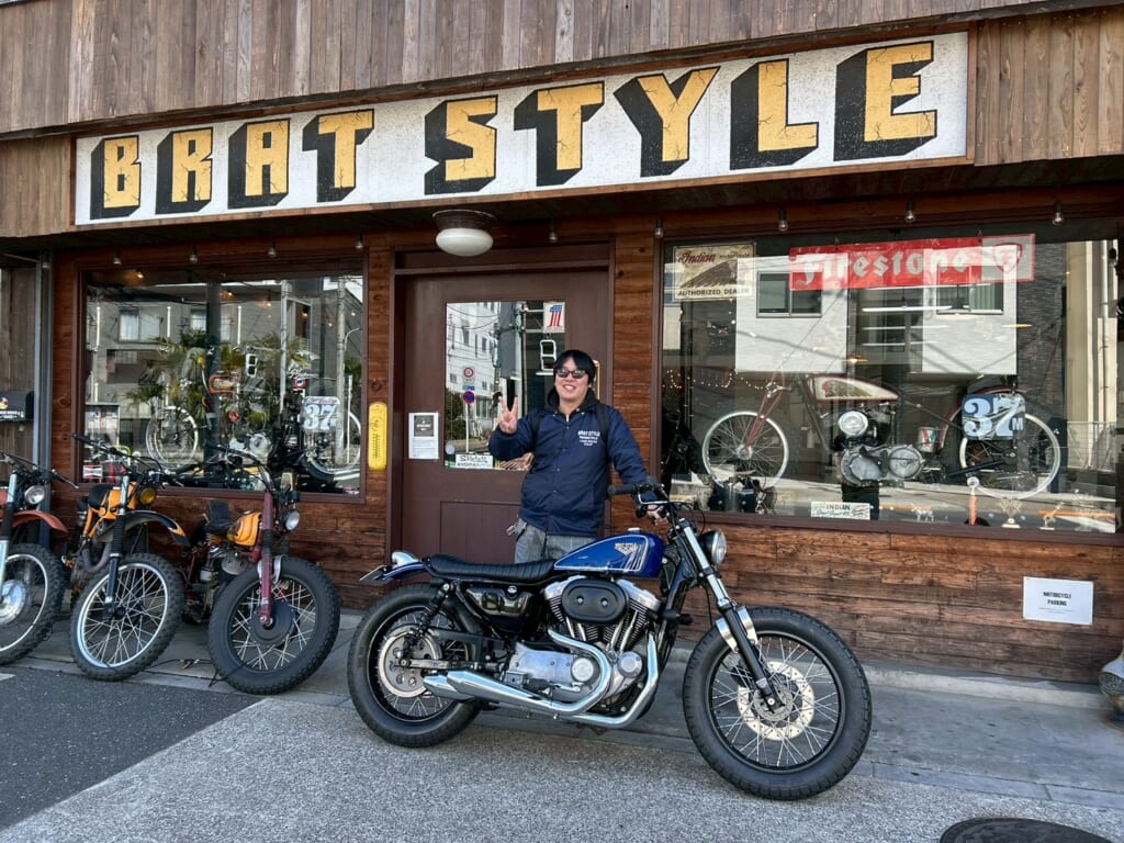 車検納車のS様。今回は車検に加えて、オイル交換とキャブレター調整もさせていただきました!これで当分は安心して乗っていただけると思います。BRATの中でも珍しいFUNNYチョッパースタイル。楽なライディングポジションで長距離も快適に走れ、シッシーバーもあるのでキャンプや連泊ツーリングの荷物も積みやすく、ロングツーリングも安心して走れるスタイルですね!今回も継続車検のご依頼ありがとうございました!