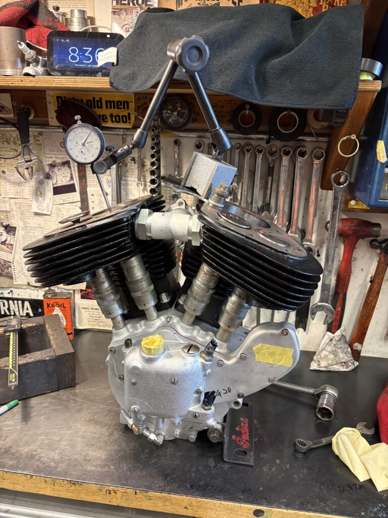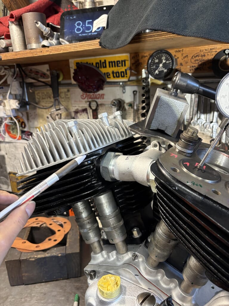 HOME > Indian Chief > 37,46,Chief project/ Motor/18 2026/03/11 Pop upしたピストンの計測。ヘッド加工が必要になります。 ボルト面出し ピストンの逃し準備 加工 各シリンダーに合わせて加工します ピストン逃し加工完了。12時間かかりました😅 トラブル防止の為出っ張ったガスケットも加工します 次はバルブリフト量Check 。37の方はホットなカムとリフターを入れたので もちろんヘッドに当たります。更に加工が必要ですね。 GT B! LINEへ送る - Indian Chief, USA