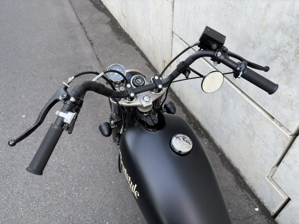 BRATのボバースタイルは、無骨でスタイリッシュなルックスを保ちながら、日常でも扱いやすい乗りやすさにもこだわって仕上げたカスタムです。足つきも良く、車高が気になる方や女性ライダーでも安心して乗っていただけます。