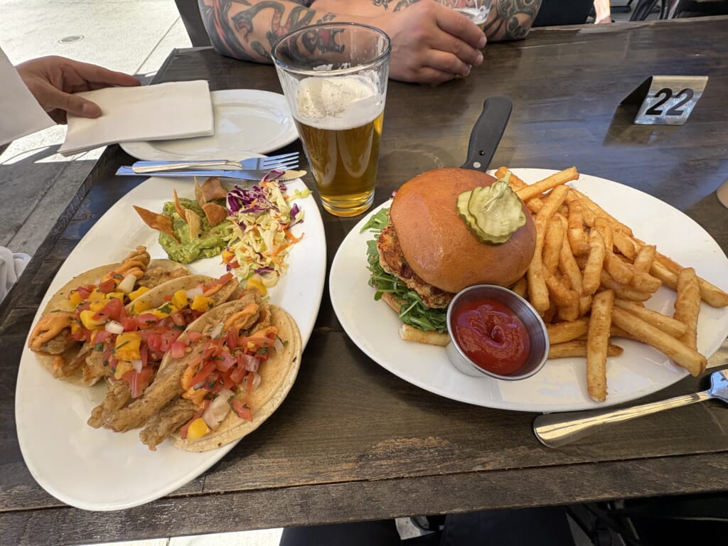 サーモンバーガーとFish Tacos🌮Yummm:)