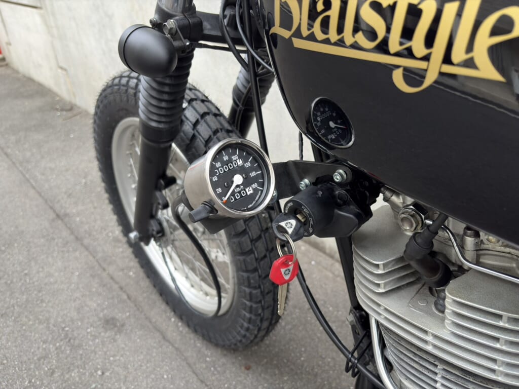ブラットでも人気の高いボバースタイル。純正タンクを生かしたスタイルで、ゆったりトコトコ流したい方や、楽なライディングポジションで走りたい方には特におすすめのスタイルです。リアをローダウンしているので初めてバイクに乗る方や足つきに不安のある方にも安心して乗って頂けると思います。