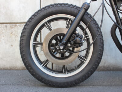 タンクにブラックでさりげなく入れたストロボと、短めにセットアップされたリアフェンダーでレーシーな雰囲気を出しました。