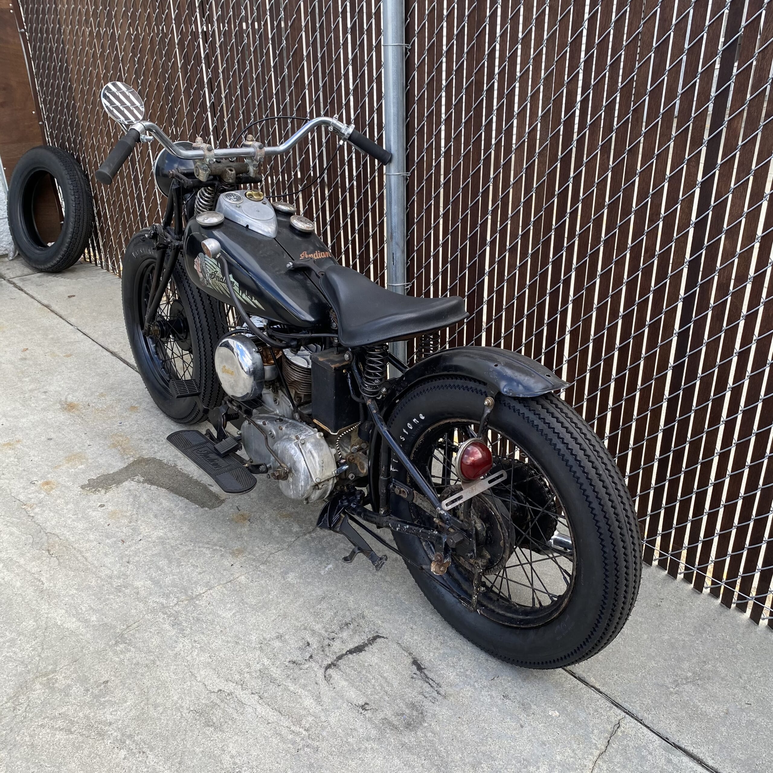 コロラドの納屋で長年保管さていたIndian Sport Scout。当時のレーサー達が好んだ手法で741Scoutのパーツが色々使われていて自分好みのベース車両でしたので仕入れました。